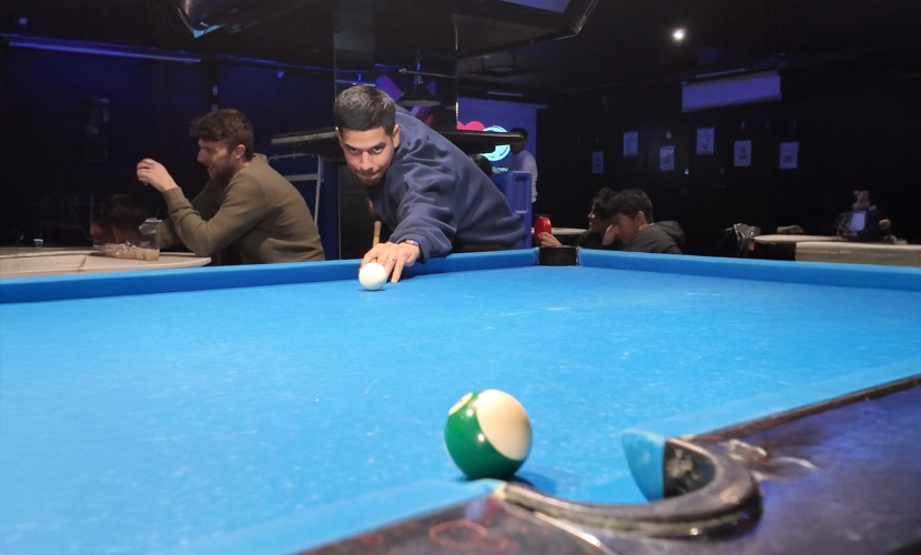 The venue hosts social pool nights, live sports screenings and Latin party nights, often combining all three in one evening.